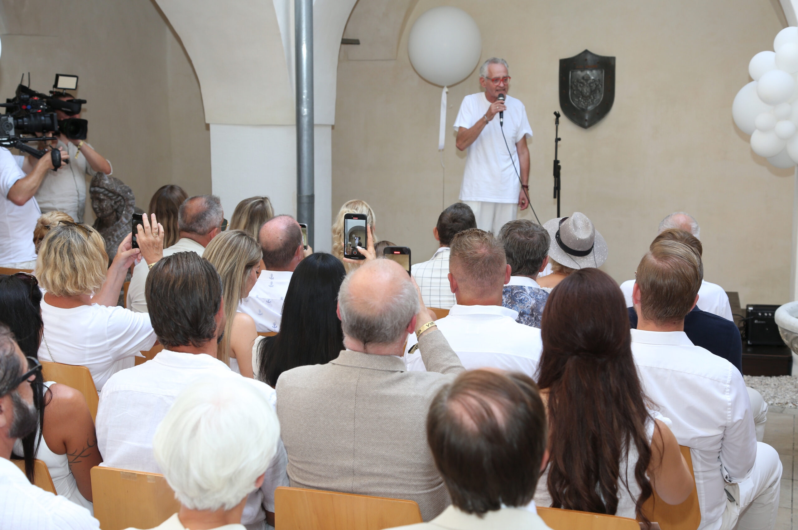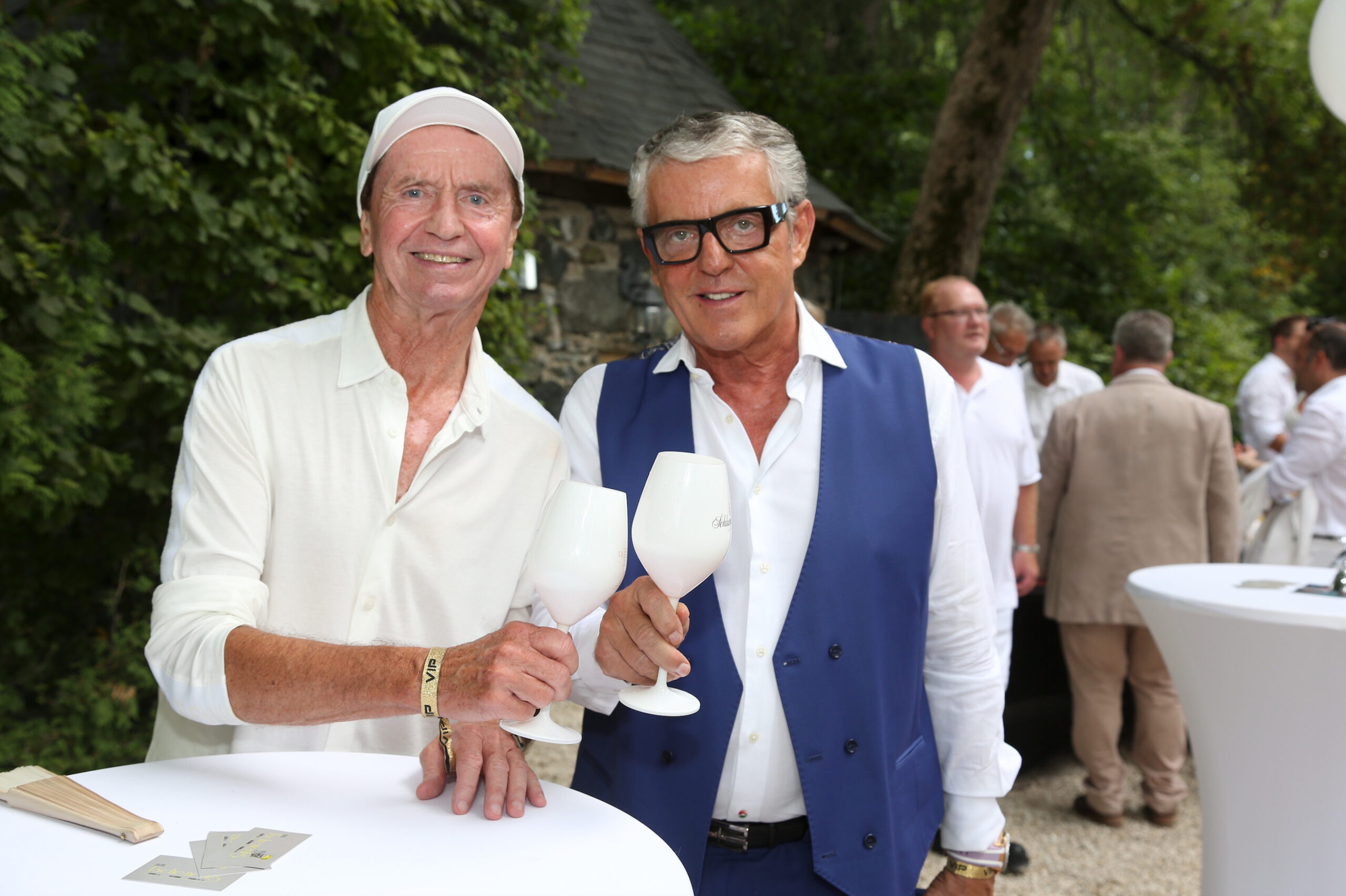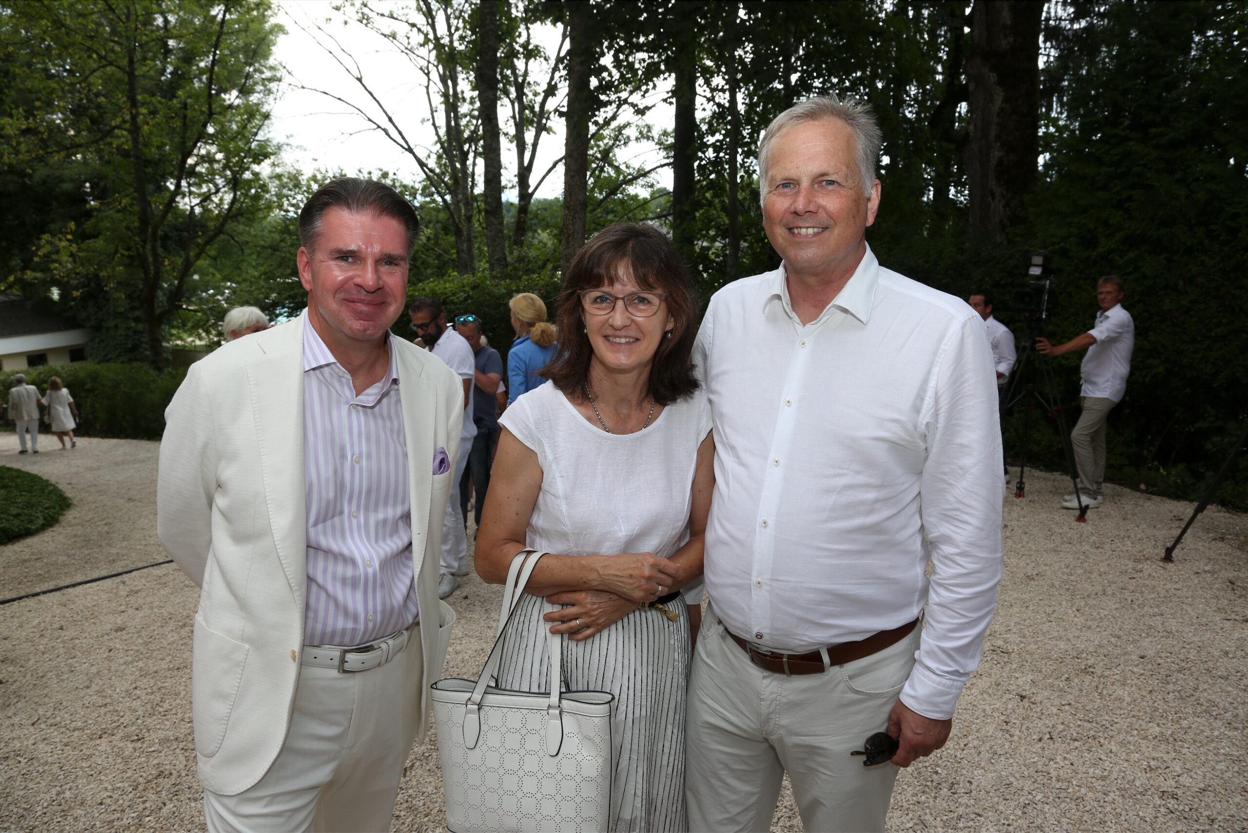 155 Festgäste, die der Überreichung beiwohnten, brachten am 14. 8. Leben in die alten Gemäuer. Unter ihnen der Obmann der Wiener Gastronomie Peter Dobcak, Moderator Oliver Feicht, Security-Unternehmer Martin Fohn (INS-Security), Lakeside-Chef Florian Glatzner, VÖZ-Geschäftsführer Gerald Grünberger, Mercedes Benz-Werbelegende Erich Hammerschmid, Gastronom Poldi Huber, Eventmanager David Kaburek, Mr. Ferrari Heribert Kasper, Springer + Jacoby Austria-Chef Ralf Kober und Natascha Kober (die einen eigenen Song für Mucha komponierten), der Geschäftsführer des Haus des Meeres Hans Köppen und seine Frau Umida, Mauro Maloberti, Mag. Heinz Messinger (AME International GmbH), John Harris Eigentümer Ernst Minar, Elvis Nake, Schönbrunn Group CEO Klaus Panholzer, VGN-Chef DDr. Horst Pirker, Bundesministerin a.D. Maria Rauch-Kallat, die Jacques-Lemans Zampanos Alfred Riedl und Andreas Riedl (der detto am 14.8. Geburtstag feiert), KR Sepp Sintschnig (Ford Sintschnig), Erich Satran, der Maler Raimund Seidl, Kollitsch & Soravia Geschäftsführerin Jasmin Soravia, Kathi Stumpf und Alexander Beza, Emel und David Tschikof, David Wang, Logistikunternehmer Benjamin und Agnes Weindel, Karin Winkler (Tiergarten Herberstein), Veldens Modezampano Christian Woess (der Christian W. Mucha ausstattete) und die Rechtsanwälte Dr. Georg Zanger und Mag. Martin Machold, konnten sich anschließend selbst ein Bild von Muchas Lebenswerk machen. Das Schloss bewundern, das von den Muchas jüngst erneut in wochenlanger Arbeit und mit Hilfe der Gebäudereinigung Brillant (Robert J. Isop) auf Hochglanz gebracht wurde. Oder durch die barocken und englischen Gärten flanieren, die von der Gärtnerei Grohar liebevoll gepflegt werden. Dort erwartete sie eine kulinarische Stärkung vom Catering Tschermenig (Markus Tschemernig). In Kärnten, wie der Hausherr anmerkte, freilich nicht mit Austern, Schnecken und Thunfischtartar, sondern mit wunderbaren Kasnudeln, Ripperln und Hendeln vom Feinsten – sprich: den lokalen Spezialitäten. Erfrischung fanden die Gäste dabei nicht nur im Schatten der Bäume, sondern auch bei Prickelndem von Schlumberger, Soft-Drinks von Coca-Cola und den besten Gewächsen aus dem Hause Morandell.