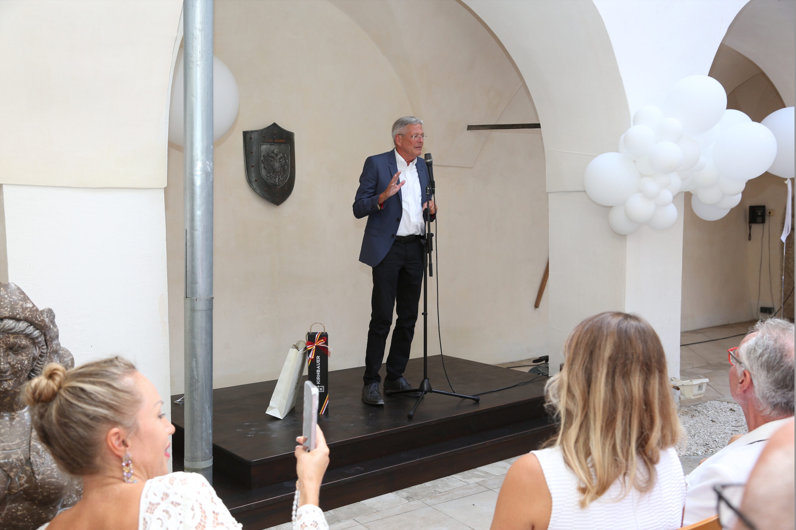 Fazit: Ekaterina Mucha als Hausherrin dankte den Gästen für ihr Kommen. Sie hieß die internationale Gratulantenschar perfekt auf italienisch und russisch willkommen, der Hausherr legte auf deutsch, englisch und französisch nach. Und Georg Zanger begrüßte auf chinesisch. Da ließ sich der Landeshauptmann nicht lumpen und fügte – reaktionsschnell und logisch – eine slowenische Begrüßung hinzu. Und erntete dafür einen Sonderapplaus.