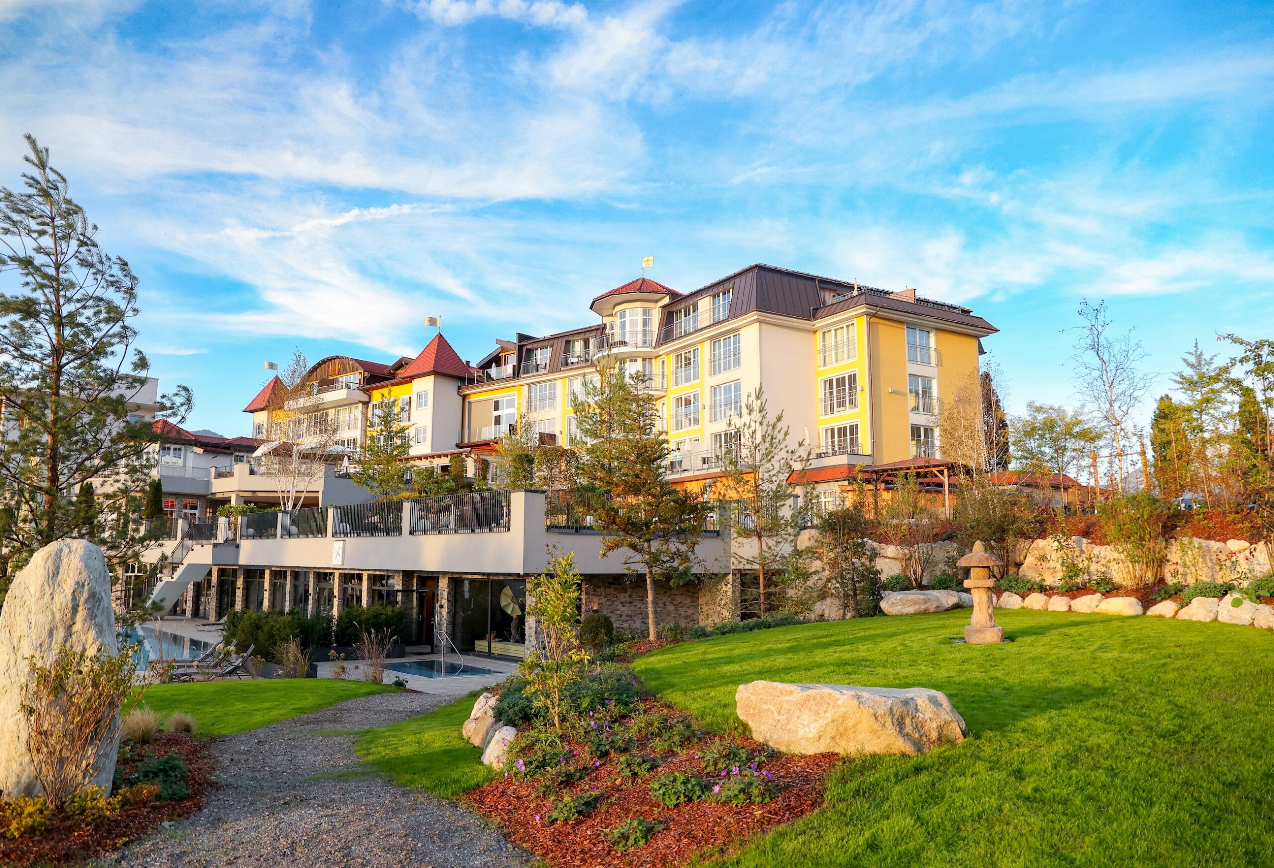 Der umliegende 20.000 m² große Park ist zudem weit mehr als Naturkulisse: Meditationswiesen, Wasserwelten und harmonisch gestaltete Kraftplätze machen ihn zu einem inspirierenden Rahmen für Bewegung und Achtsamkeit.