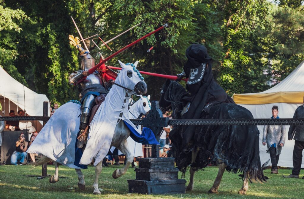 Herzstück ist das große Ritterturnier, bei dem Gut und Böse in packenden Duellen aufeinandertreffen. Pferdedressuren, Akrobatik und lodernde Schwerter versprechen ein Spektakel, das Besucherinnen und Besucher unmittelbar in die Zeit des Mittelalters versetzt. Ergänzt wird das Programm durch einen Markt mit Musik, Handwerkskunst und Kulinarik – darunter Spezialitäten wie „Drachen-Blut“ und „wilde Mäuse“. Auch für Kinder gibt es Attraktionen: In der Knappen-Schule können sie selbst in die Rolle von Rittern und Burgfräulein schlüpfen.
