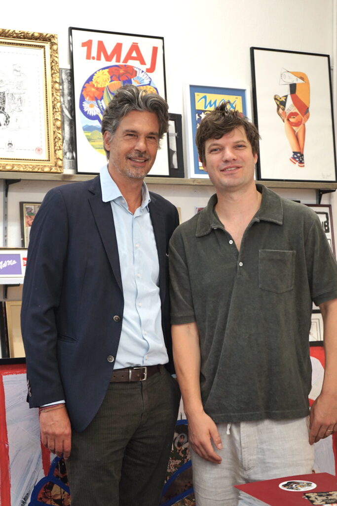 Gregor Kadanka, Geschäftsführer von Mondial Reisen (links), und Künstler Ben Reyer (rechts) im Atelier des Künstlers.