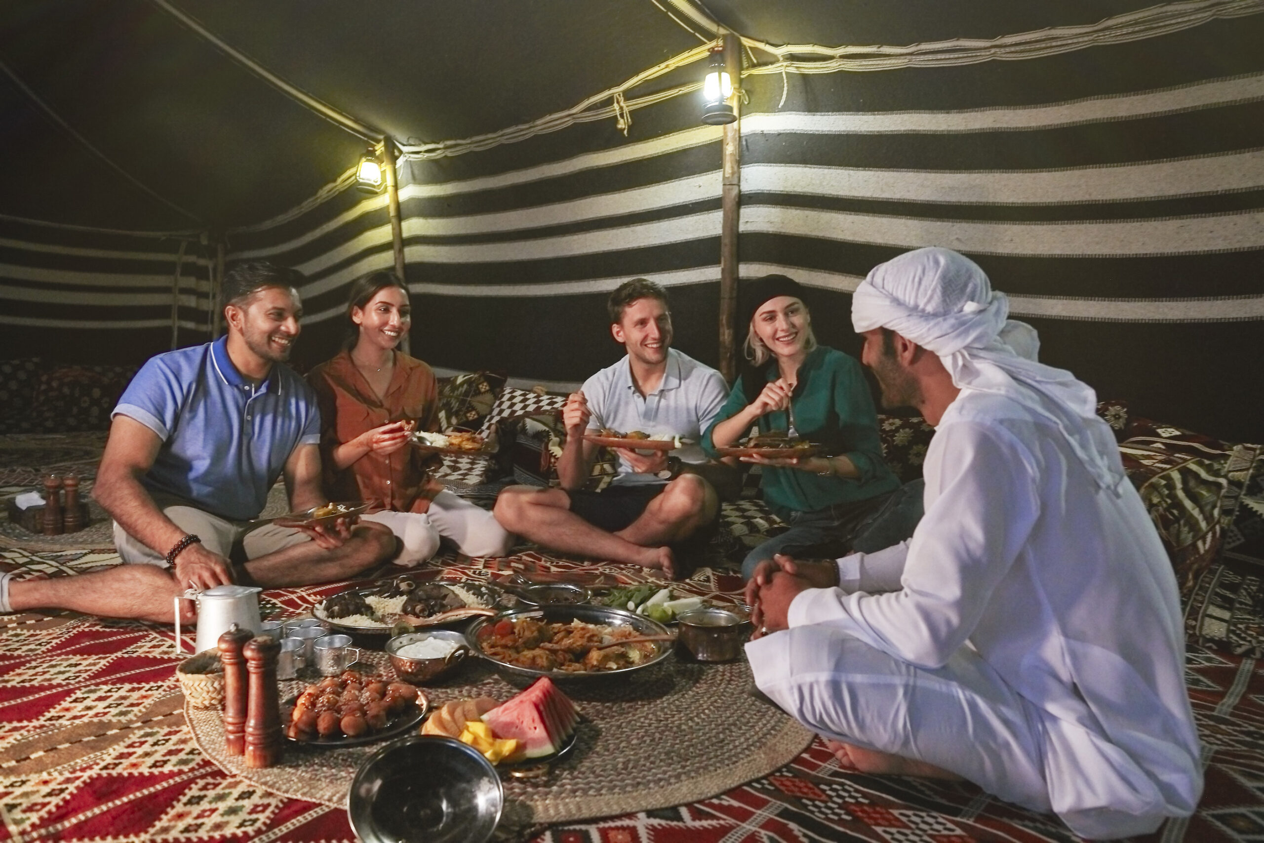 Wer die Traditionen der Vereinigten Arabischen Emirate entdecken möchte, findet zahlreiche Gelegenheiten: Festlich dekorierte Zelte und Majlis laden zu gemütlichen Iftar-Abenden unter freiem Himmel ein. In den Ramadan-Märkten gibt es traditionelle emiratische Speisen, Workshops und familienfreundliche Unterhaltung. Auch das Sheikh Mohammed bin Rashid Al Maktoum Centre for Cultural Understanding bietet spannende Führungen, Moscheebesuche und Einblicke in die emiratische Küche.