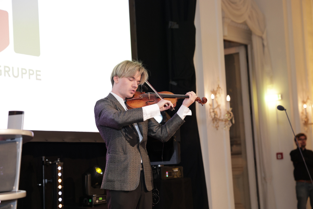 Umrahmt wurde der Festabend durch klassische Musik. Die Sopranistin Vlada Bakanova gab O mio babbino carozum Besten. Und Weltstar der Violine Yury Revich, zur Veranstaltung aus Paris eingeflogen, begeisterte die Gäste mit Antonio Vivaldis Storm. Er unterstrich damit seinen Ruf als neuzeitlicher Nachfolger des berühmten Teufelsgeigers Niccolo Paganini. Und: Stargeiger Revich brillierte auch mit seiner Eigenkomposition Prelude.
