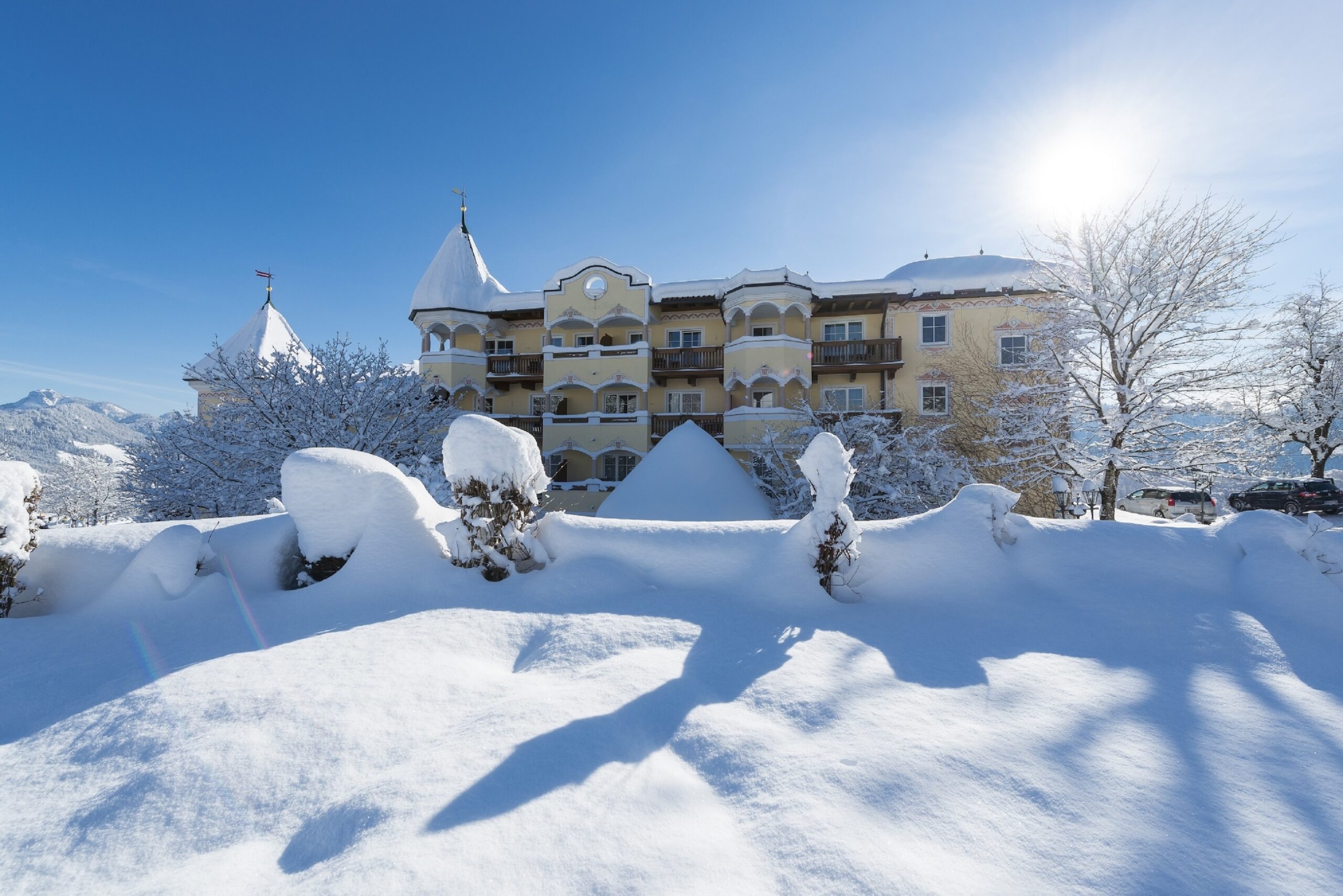 Der Peternhof im Kaiserwinkl verbindet Winteraktivitäten mit Wellnessangeboten inmitten der Tiroler Bergwelt.